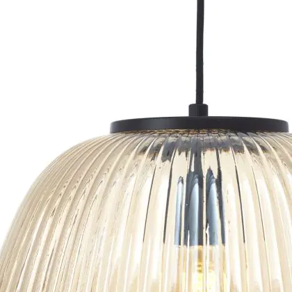 Beschreibung Brilliant Kaizen Pendelleuchte Glas Pendelleuchte Metall Schwarz Beige | 350mm - Geeignet für 1x E27
