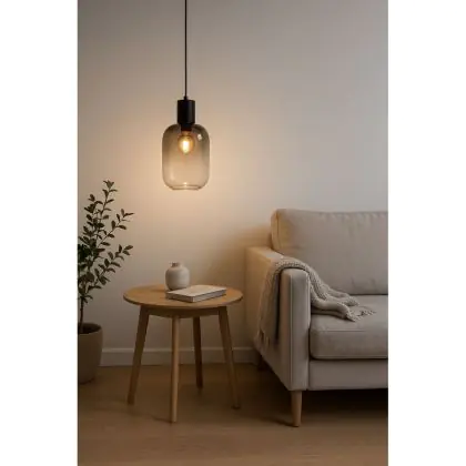 Die D'Lite Pendelleuchte Leffinge Smokey Glass kombiniert stilvolles Design mit funktionaler Beleuchtung. Das Rauchglas sorgt für eine warme, einladende Lichtverteilung, während die kompakte Größe sowohl in großzügigen als auch kleineren Räumen ideal zur Geltung kommt. Perfekt für alle, die Wert auf Design und Alltagstauglichkeit legen.