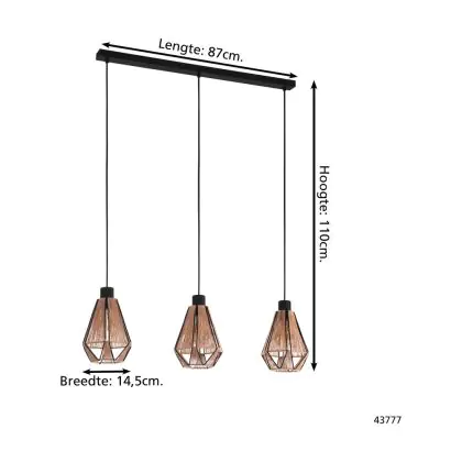 Die Eglo Pendelleuchte Adwickle Stahl Schwarz | IP20 - Geeignet für 3x E27 sorgt für eine angenehme Ausleuchtung und punktet durch modernes Design. Diese Leuchte ist speziell zur Montage an der Decke vorgesehen.