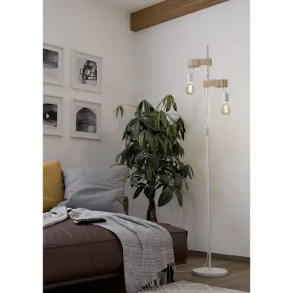 Eglo Stehlampe Townshend Stahl Weiß Holz | IP20 - Geeignet für 2x E27