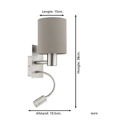 Beschreibung Eglo Wandleuchte Pasteri Stahl Satin-Nickel 40 | IP20 - Inkl. Spot und Exkl. 1x E27