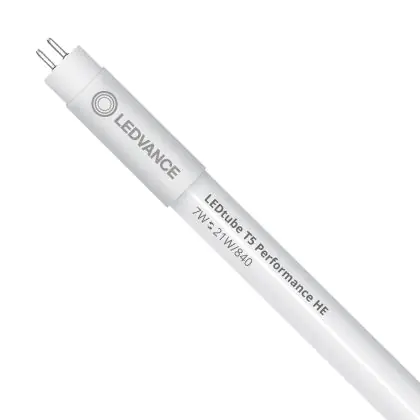 Die Ledvance LED Röhre T5 Performance (Mains AC) High Efficiency 7W 1000lm - 840 Kaltweiß | 55cm - Ersatz Für 14W ist eine effiziente LED-Röhre und der perfekte Ersatz für Ihre konventionelle Leuchtstoffröhre mit 14W und einem G5. Die Röhre hat eine Länge von 549 mm und einen Durchmesser von 19 mm. Zudem strahlt das Produkt Licht in der Farbtemperatur 4000K - Kaltweiß aus und punktet durch eine lange Lebensdauer.