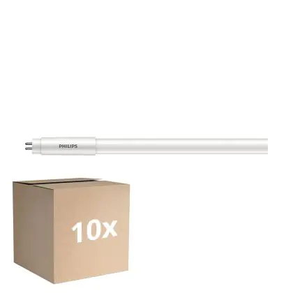 Die Mehrfachpackung 10x Philips Master LED T5 (Mains AC) High Efficiency 7W 1050lm - 840 Kaltweiß | 55cm - Ersatz Für 14W ist eine effiziente LED-Röhre und der perfekte Ersatz für Ihre konventionelle Leuchtstoffröhre mit 14W und einem G5. Die Röhre hat eine Länge von 563 mm und einen Durchmesser von 19 mm. Zudem strahlt das Produkt Licht in der Farbtemperatur aus und punktet durch eine lange Lebensdauer.