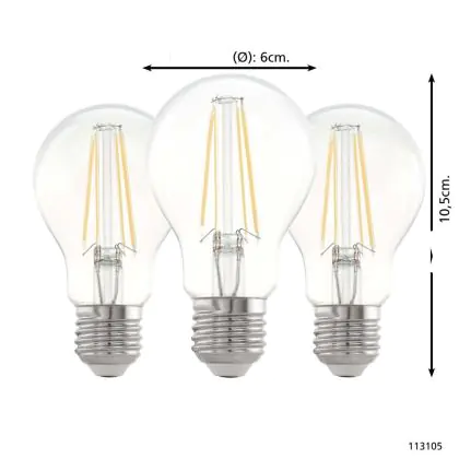 Die Mehrfachpackung 3x Eglo LED Birne E27 Fadenlampe Klar 21W 806lm - 827 Extra Warmweiß | Ersatz Für 60W ist eine effiziente E27 LED-Lampe mit Retrodesign und der perfekte Ersatz für Ihre konventionellen 60W Lampen mit E27. Zudem strahlt sie Licht in der Farbtemperatur 2700K - Extra Warmweiß aus und punktet durch eine lange Lebensdauer.