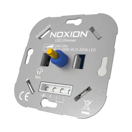 Die Nennleistung des Noxion LED-Dimmer RLC 0-300W 220-240V liegt in einem Bereich von 0-300 Watt. Damit deckt der Dimmer für LED einen größeren Wattbereich ab, als vergleichbare Produkte anderer Hersteller.