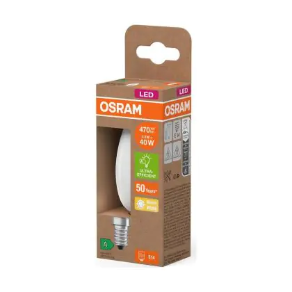 Die Osram LED Classic E14 Kerze Fadenlampe Matt 2.2W 470lm - 827 Extra Warmweiß | Ersatz Für 40W ist eine effiziente E14 LED-Lampe mit Retrodesign und der perfekte Ersatz für Ihre konventionellen 40W Lampen mit E14. Zudem strahlt sie Licht in der Farbtemperatur 2700K - Extra Warmweiß aus und punktet durch eine lange Lebensdauer.