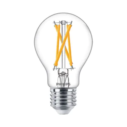 Die E27 LED-Lampe von Philips kann mit der Farbtemperatur 2200K - 2700K Dim To Warm sowohl als Akzent- als auch als Allgemeinbeleuchtung verwendet werden. Als Faustregel gilt: Je niedriger der Kelvinwert, desto gemütlicher wirkt das Licht.